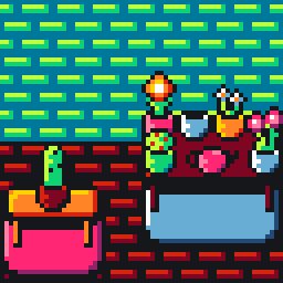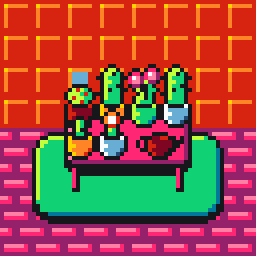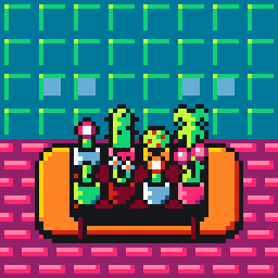 - 7 different plants (with small and large versions of each), and additional sprites for empty and seeded pots.